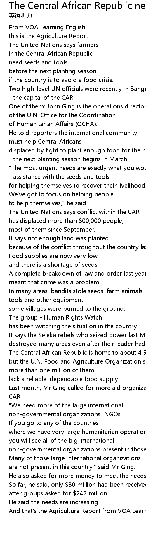 Last month, Mr Ging called for more aid organizations to come to the CAR. |