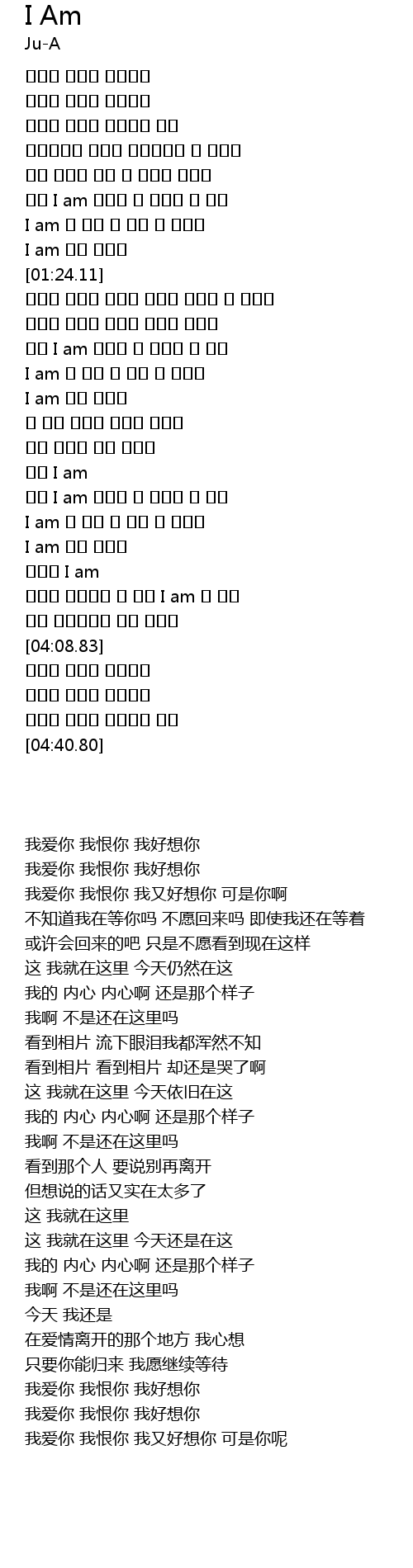 | [03:22.38] | I am 내 맘은 내 맘은 늘 그렇게 |