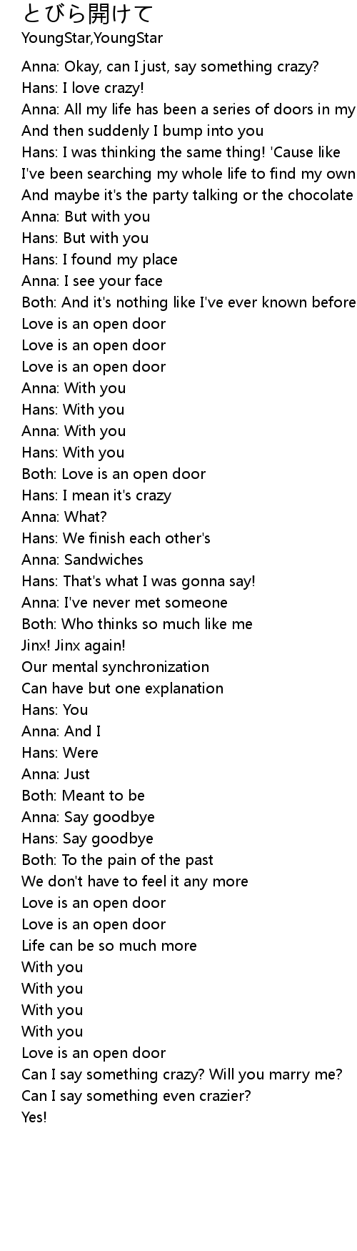 | Both: Love is an open door | |