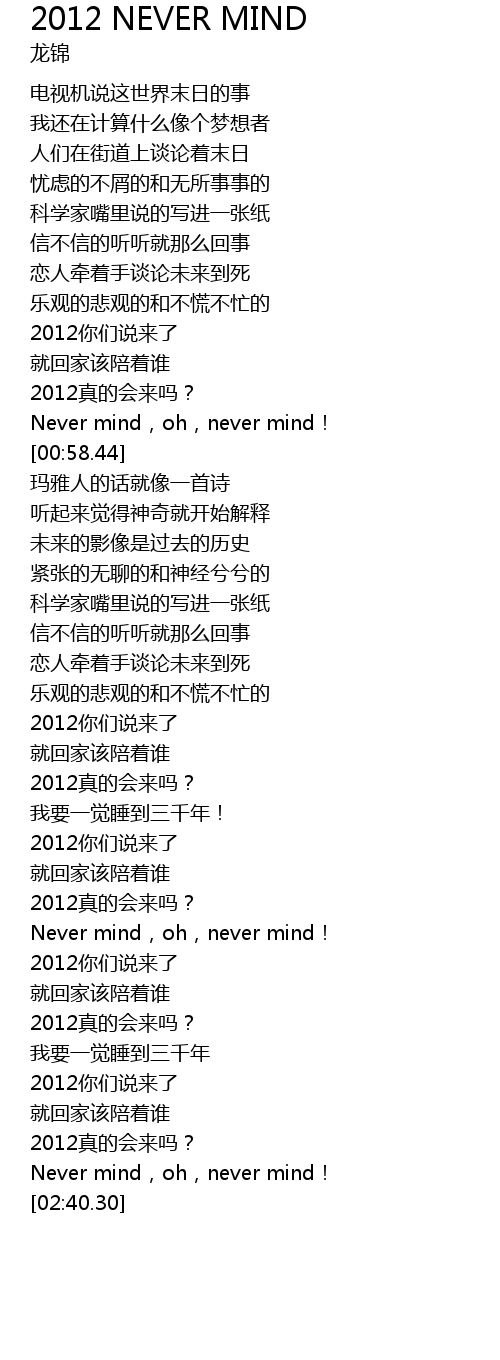| [02:03.51] | 2012真的会来吗? |