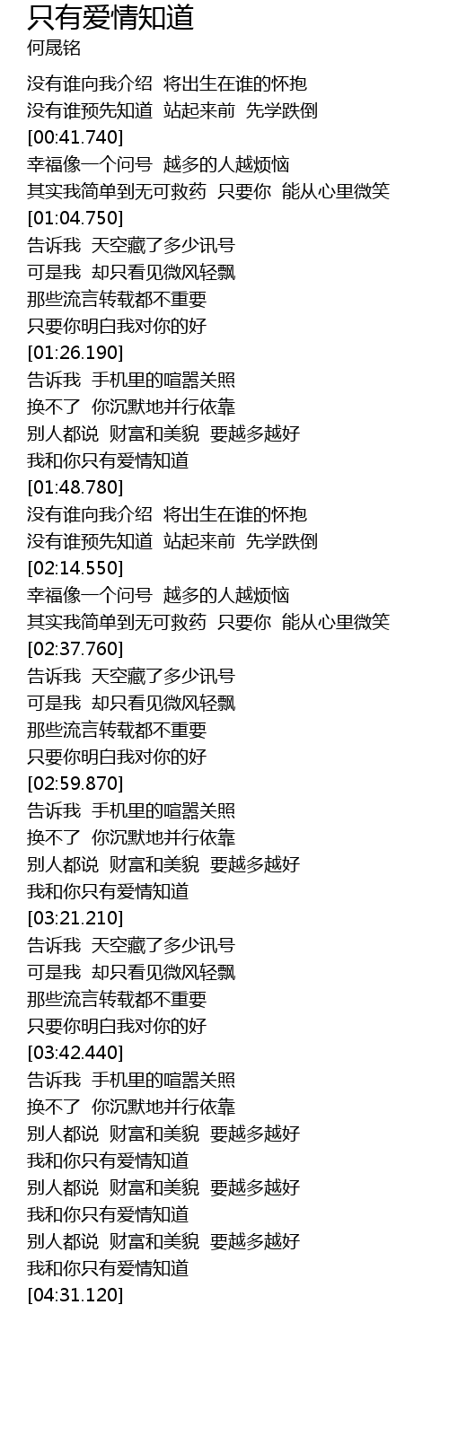 | [04:15.300] | 别人都说 财富和美貌 要越多越好 |