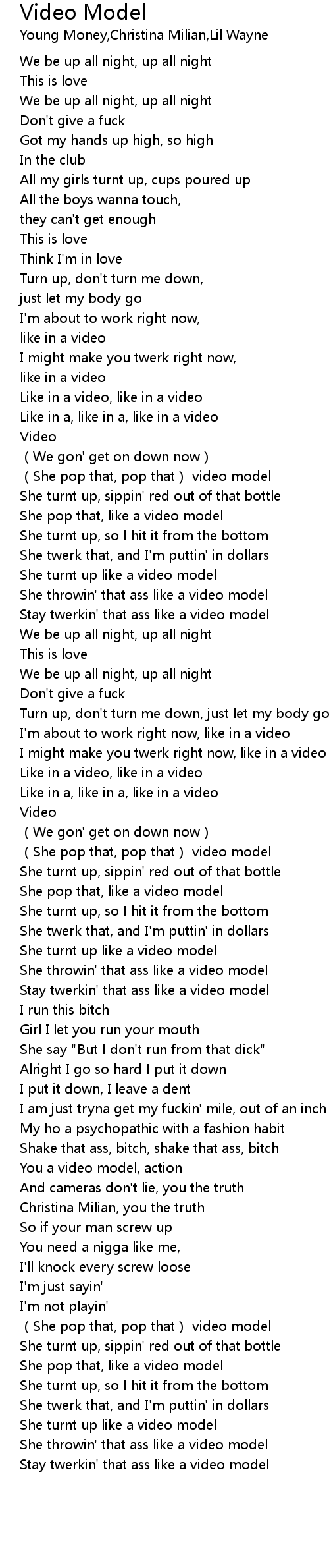 | She turnt up like a video model | |