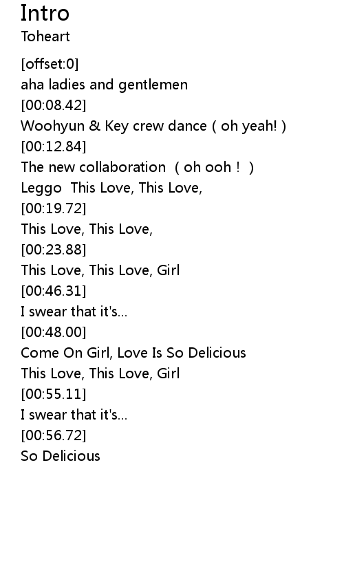 | [00:09.92] | Woohyun & Key crew dance(oh yeah!) |