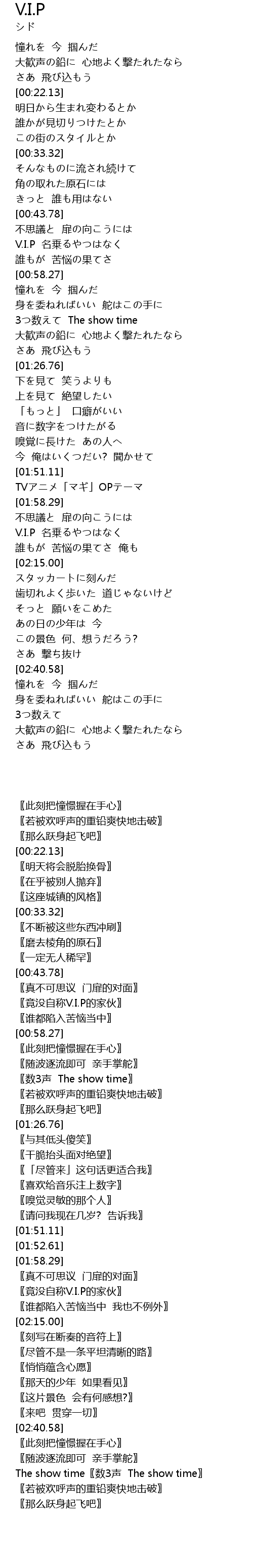 | [00:50.11] | V.I.P 名乗るやつはなく |
