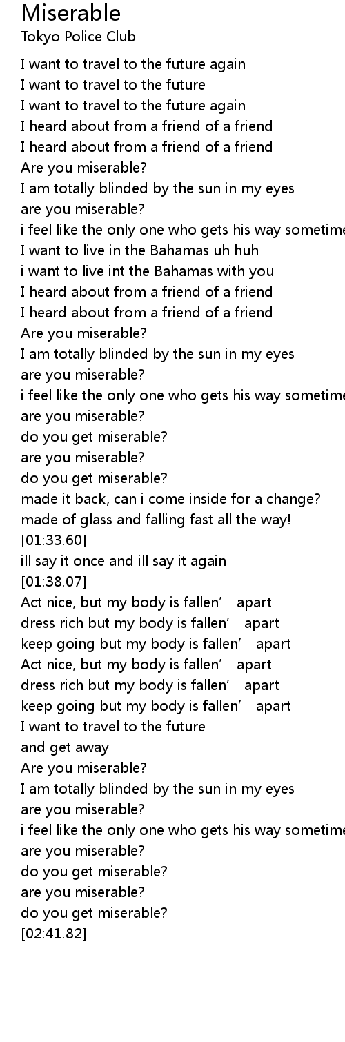| [02:02.45] | Act nice, but my body is fallen' apart |
