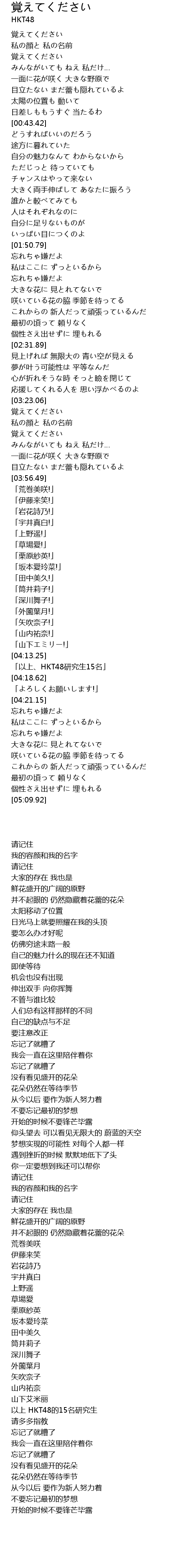 | [04:15.49] | 「以上、HKT48研究生15名」 |