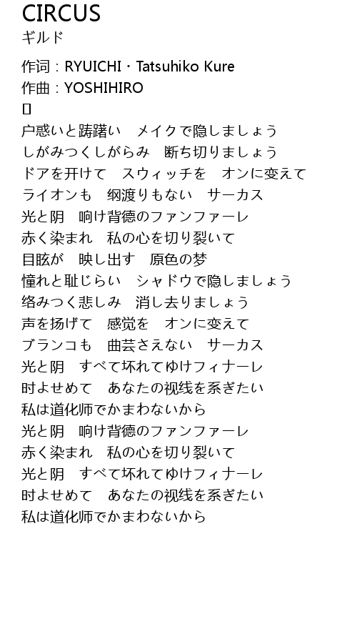 | 作词:RYUICHI・Tatsuhiko Kure | |