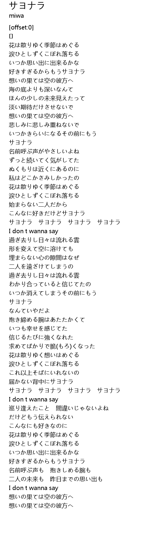 | [02:50.678] | サヨナラ サヨナラ サヨナラ サヨナラ |
