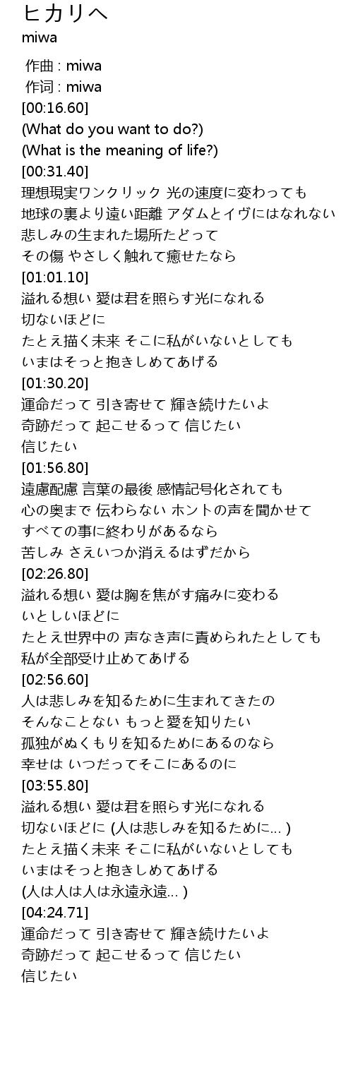 | [04:18.91] | いまはそっと抱きしめてあげる (人は人は人は永遠永遠…) |