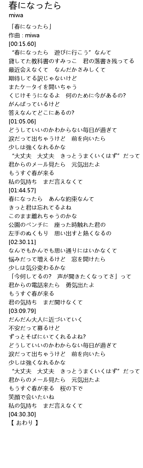 | [00:01.60] | 「春になったら」 |