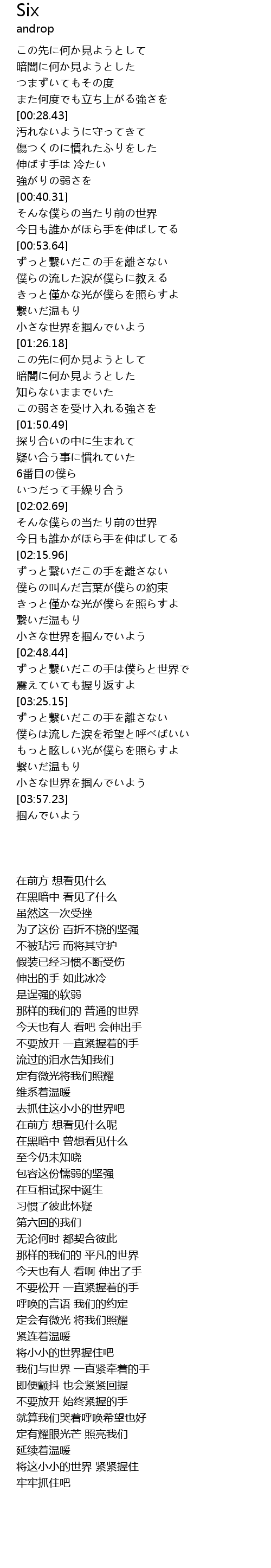 | [00:54.42] | ずっと繋いだこの手を離さない |