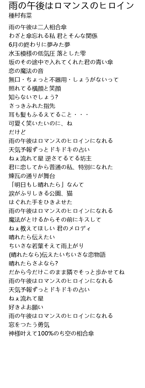 | Song | 雨の午後はロマンスのヒロイン |