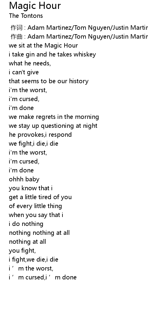 | [00:00.000] | 作词 : Adam Martinez/Tom Nguyen/Justin Martinez/Asli Omar |