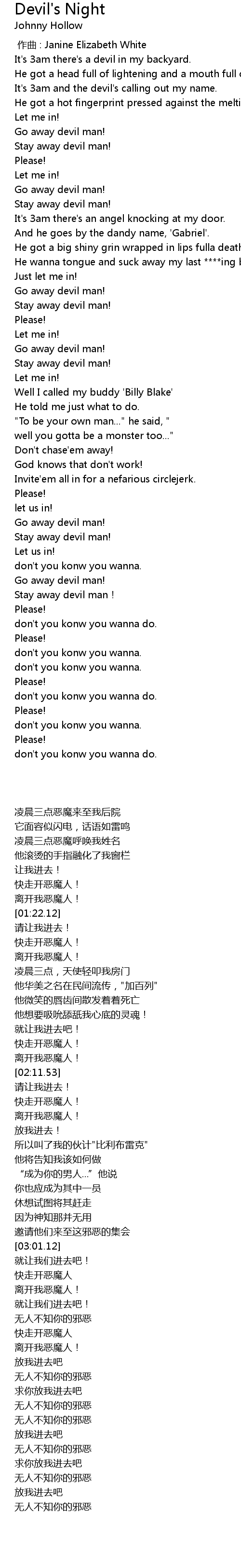 | [00:49.56] | It' s 3am there' s a devil in my backyard. |