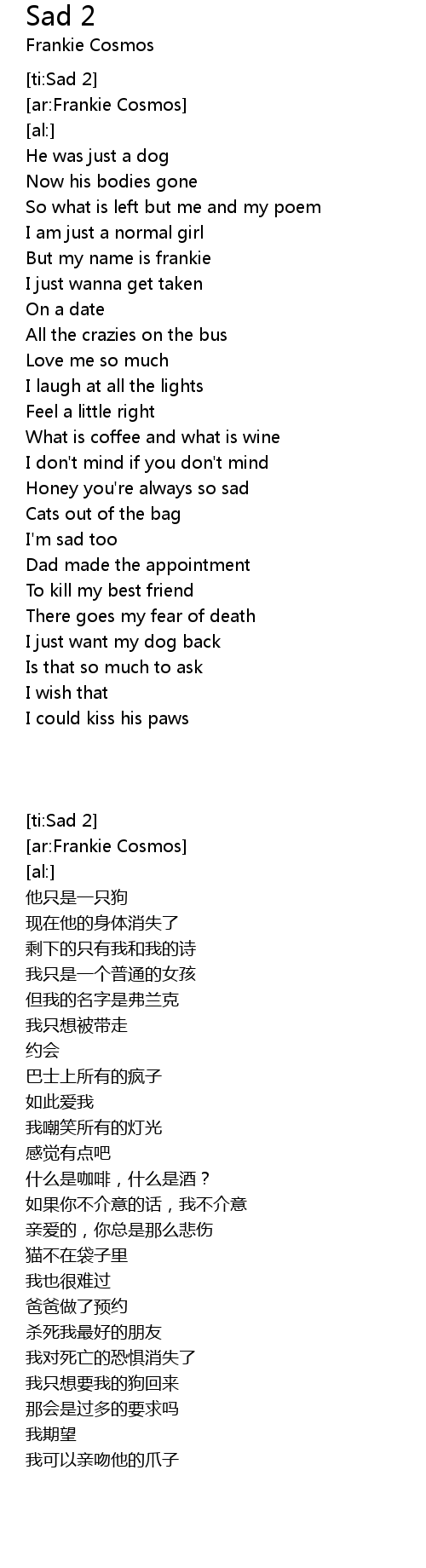 Sad 2 Lyrics
