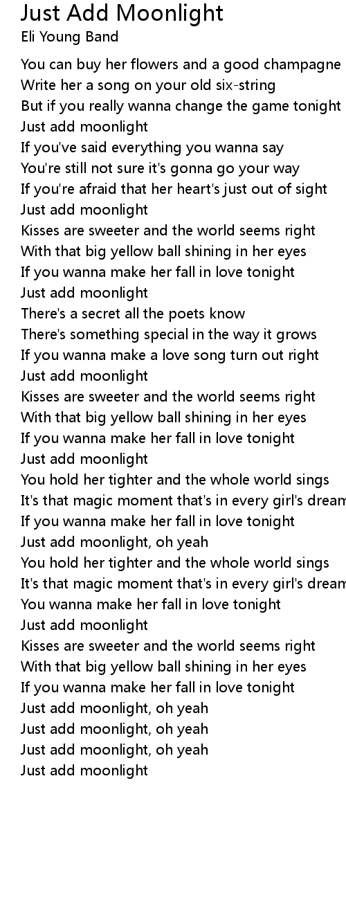 Just add moonlight, oh yeah |