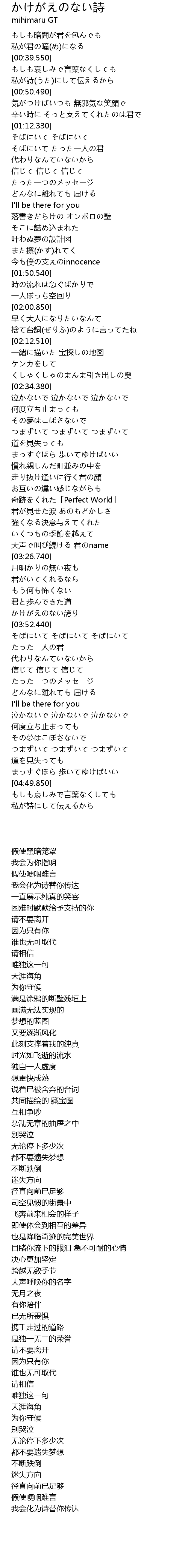 | [03:09.580] | 奇跡をくれた「Perfect World」 |