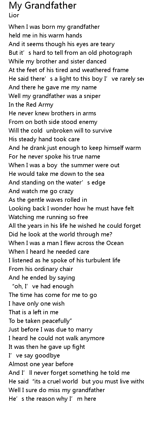 | [01:49.24] | Looking back I wonder how he must have felt |