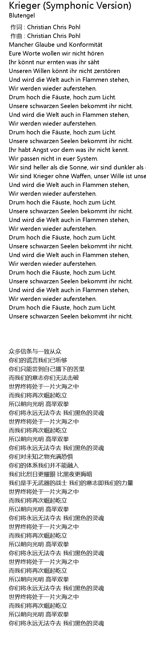 | [01:39.203] | Wir sind Krieger ohne Waffen, unser Wille ist unsere Macht. |