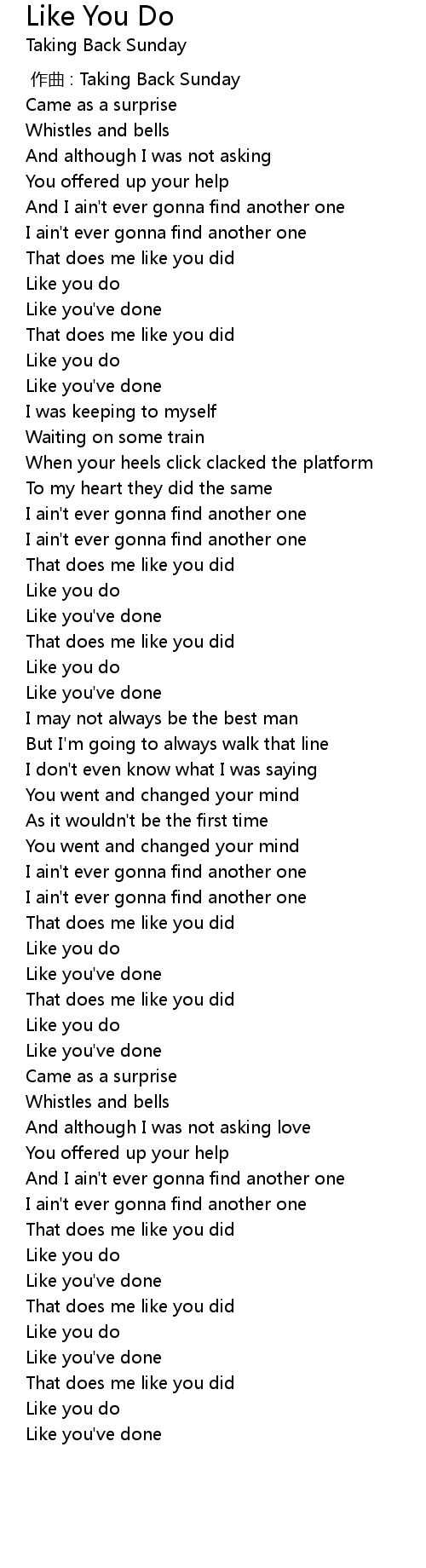 | [00:53.71] | That does me like you did |