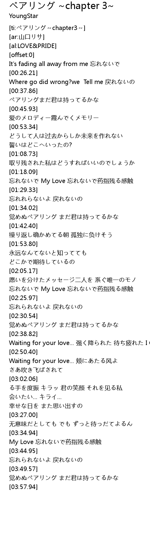 | [03:36.44] | My Love 忘れないで药指残る感触 |
