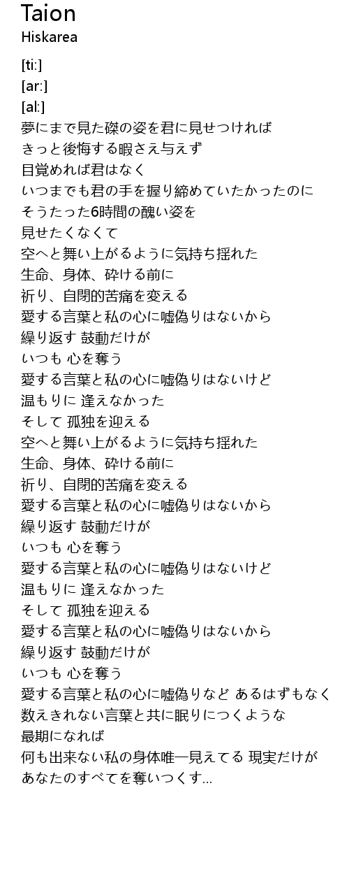 | [03:54.38] | 繰り返す 鼓動だけが |