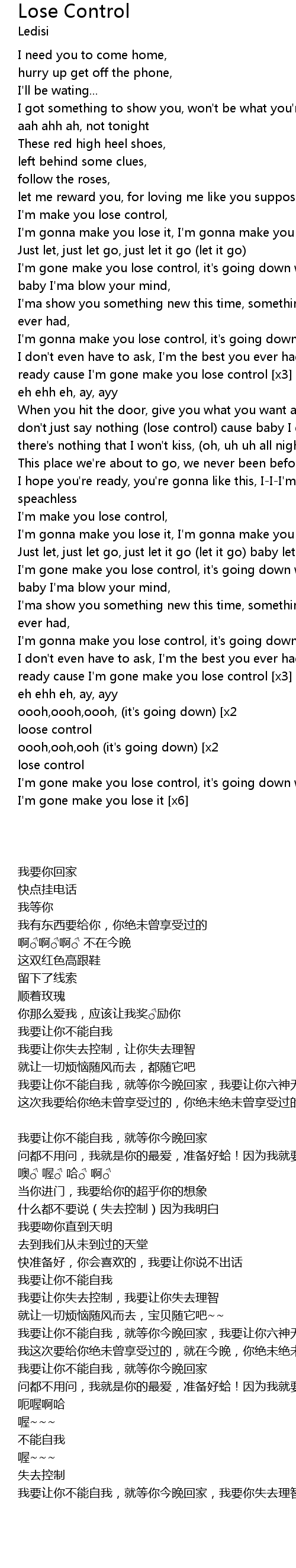 | [03:52.260]I'm gone make you lose control, it's going down when you get home, I'm gone make you lose it [x6] |