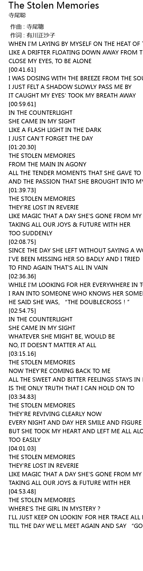 | [01:15.93] | I JUST CAN'T FORGET THE DAY |