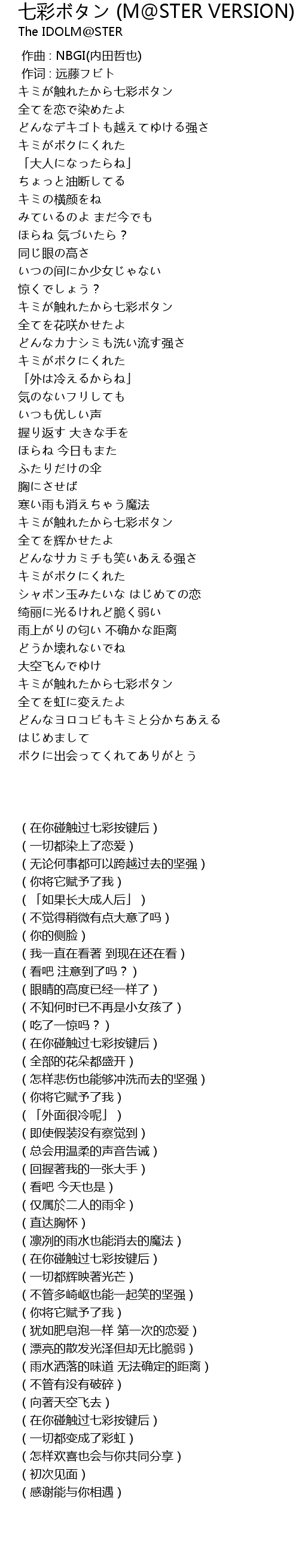 | [03:19.16] | キミが触れたから七彩ボタン |