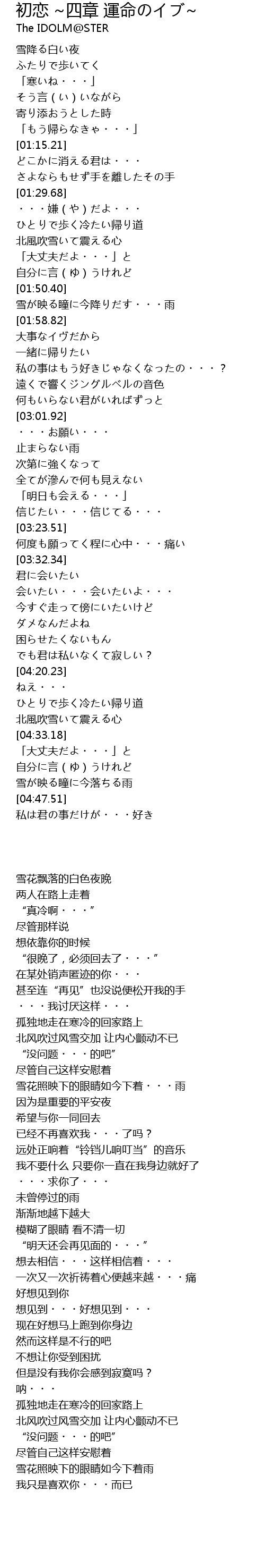 | [04:40.51] | 雪が映る瞳に今落ちる雨 |