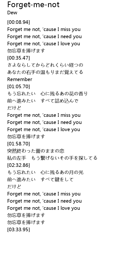 | [01:35.02] | Forget me not, ' cause I miss you |