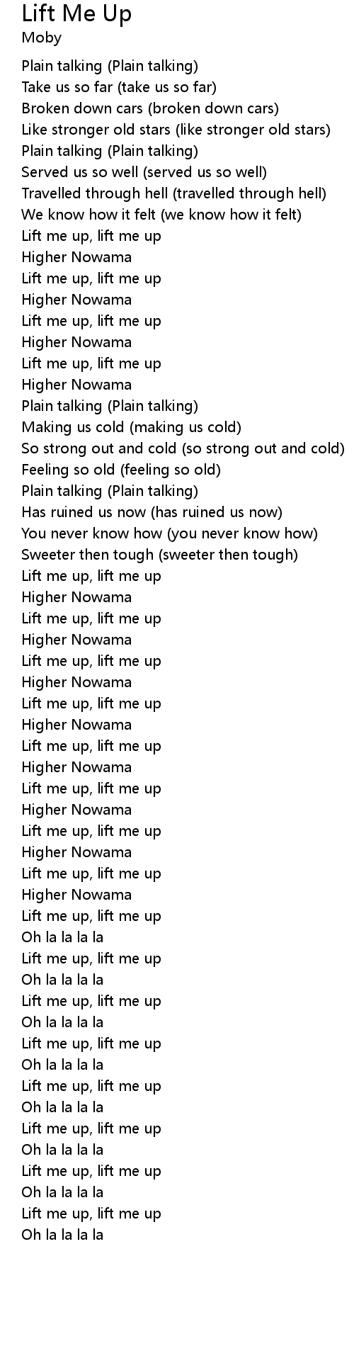 Lift me up, lift me up |