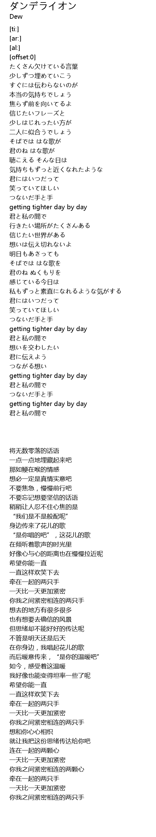 | [01:25.94] | getting tighter day by day |