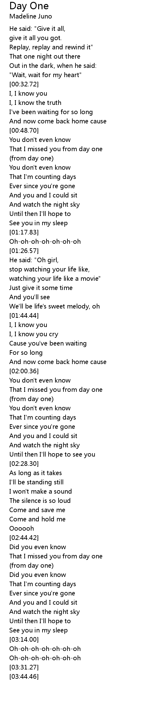 That I missed you from day one |