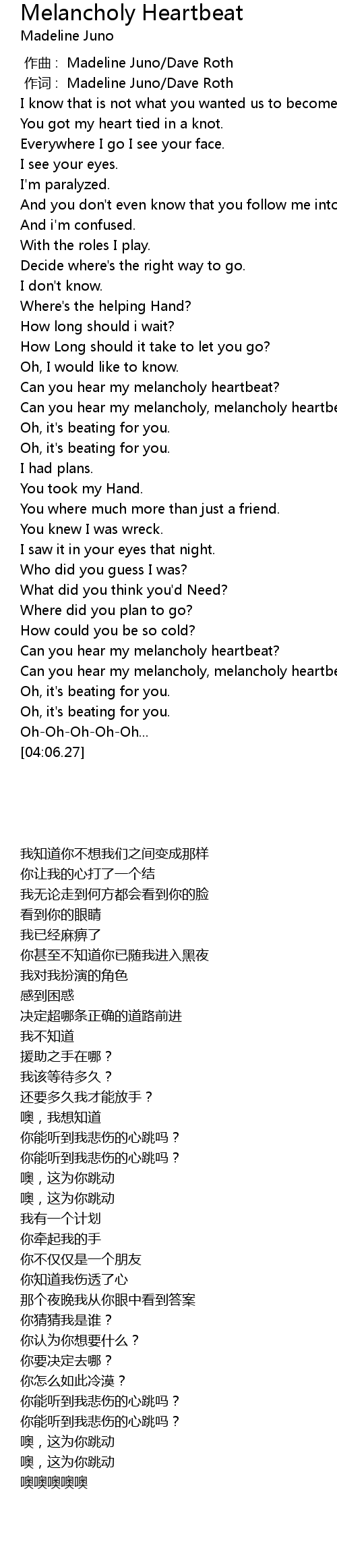 | [01:36.14] | Can you hear my melancholy heartbeat? |