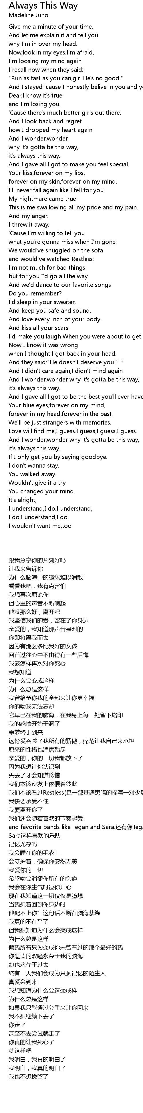 | [02:59.000] | And I wonder, wonder why it' s gotta be this way, |