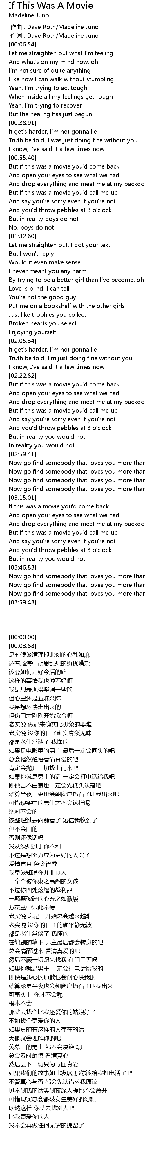 | [02:38.58] | But if this was a movie you' d call me up |