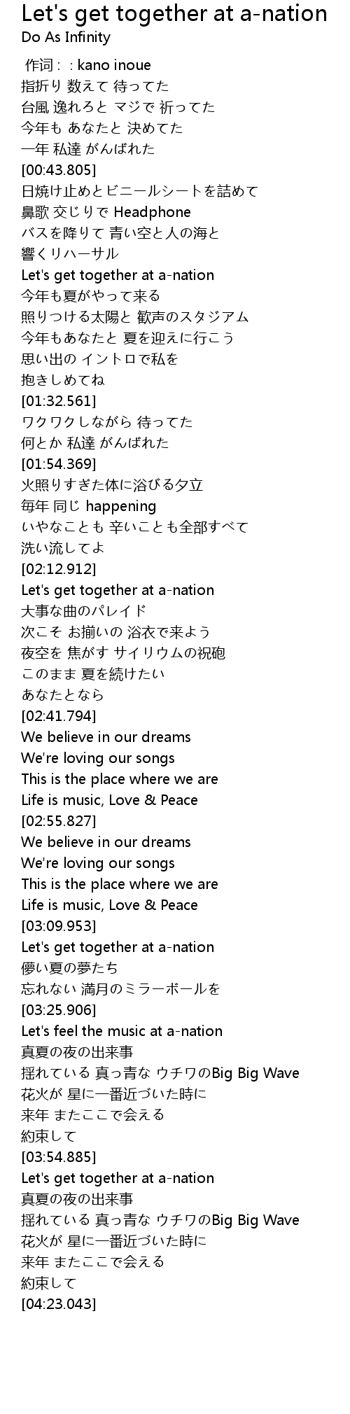 | [03:55.083] | Let's get together at a-nation |