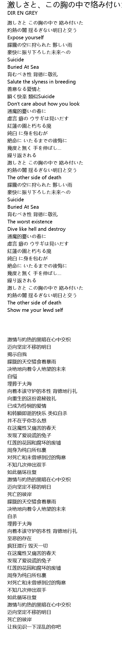 | Song | 激しさと、この胸の中で络み付いた灼热の暗 |