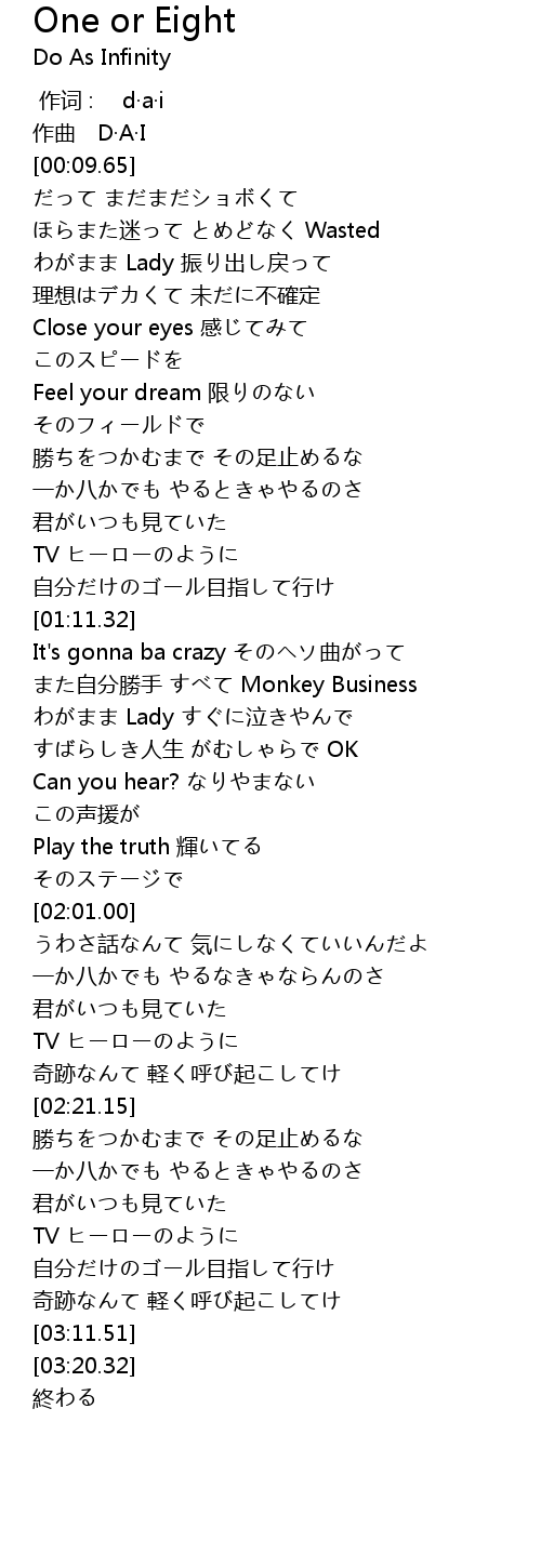 | [03:00.83] | 自分だけのゴール目指して行け |
