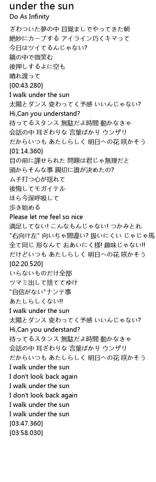 | [00:45.570] | 太陽とダンス 変わってく予感 いいんじゃない? |