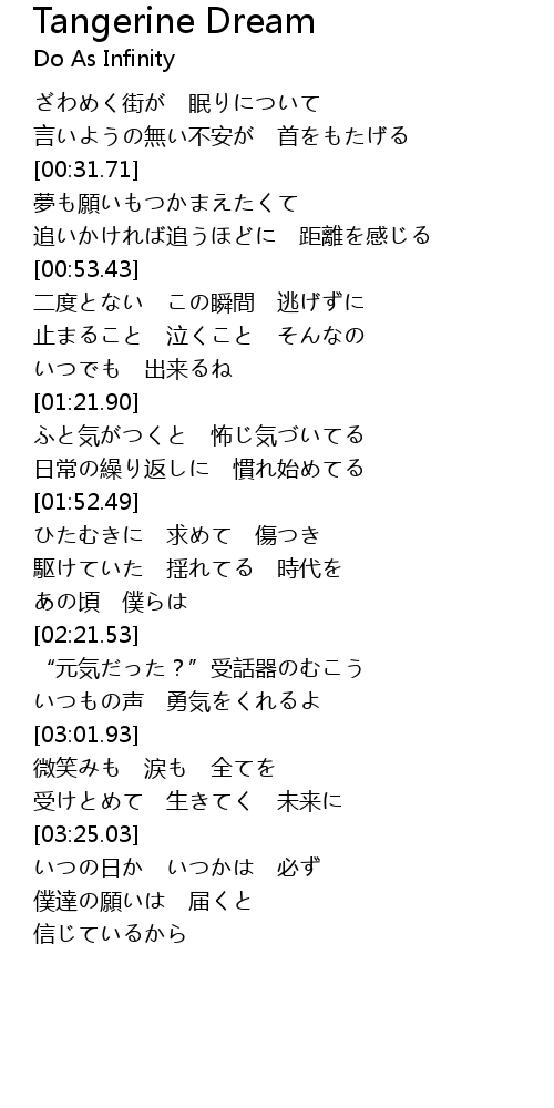 | [02:53.38] | いつもの声 勇気をくれるよ |