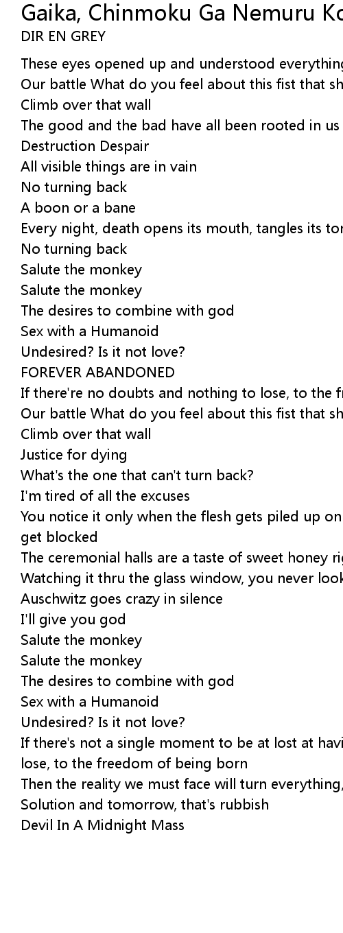 Gaika, Chinmoku Ga Nemuru Koro Lyrics