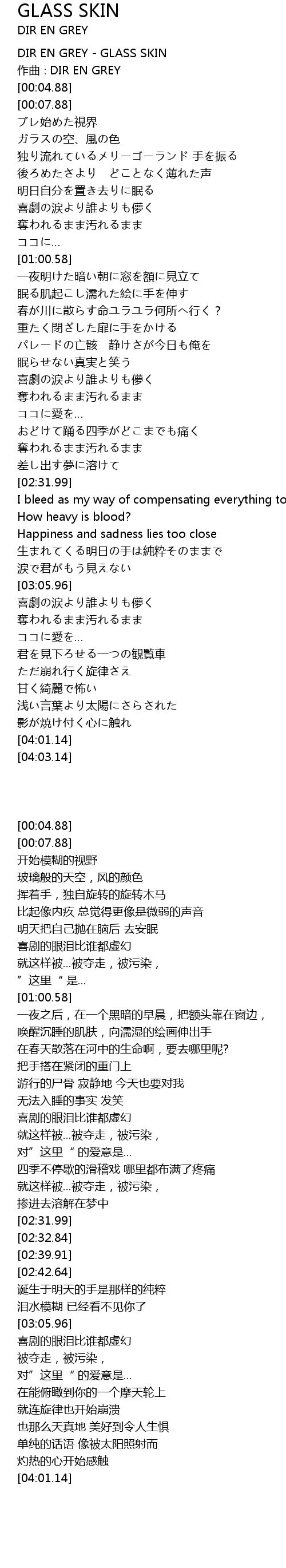 | [00:01.88] | DIR EN GREY GLASS SKIN |