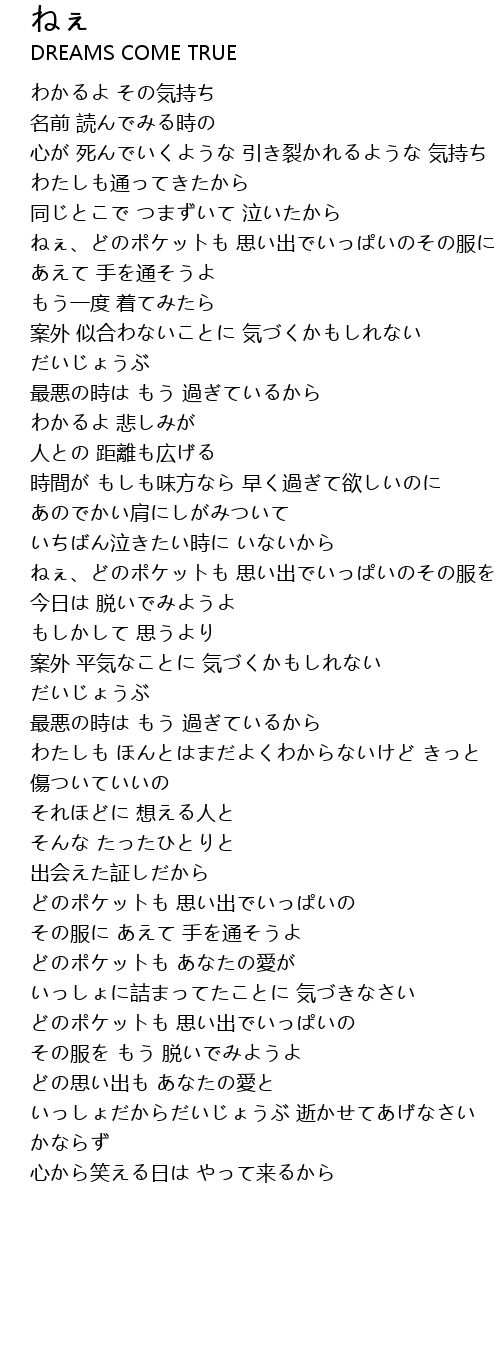 | ねぇ、どのポケットも 思い出でいっぱいのその服に | |