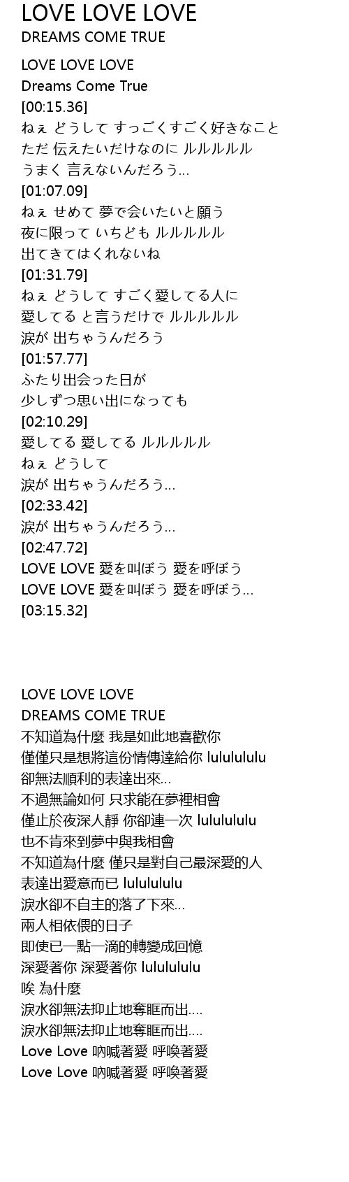 | [02:52.75] | LOVE LOVE 愛を叫ぼう 愛を呼ぼう |