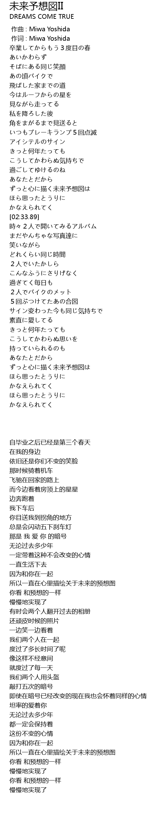 | [00:01.00] | 作词 : Miwa Yoshida |