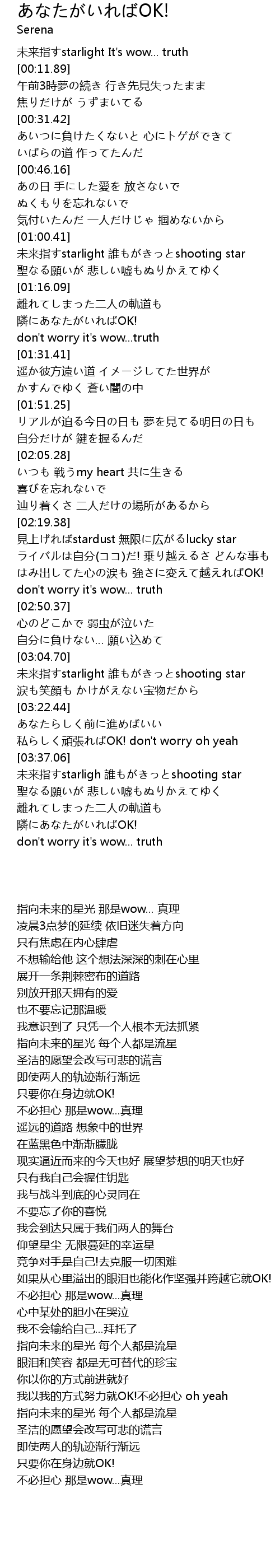 | [00:03.01] | 未来指すstarlight It's wow... truth |