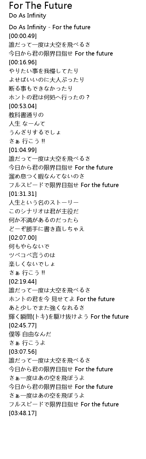 | [03:40.11] | フルスピードで限界目指せ For the future |