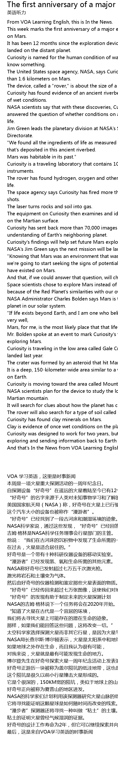 It has been 12 months since the exploration device called "Curiosity" landed on the distant planet. |